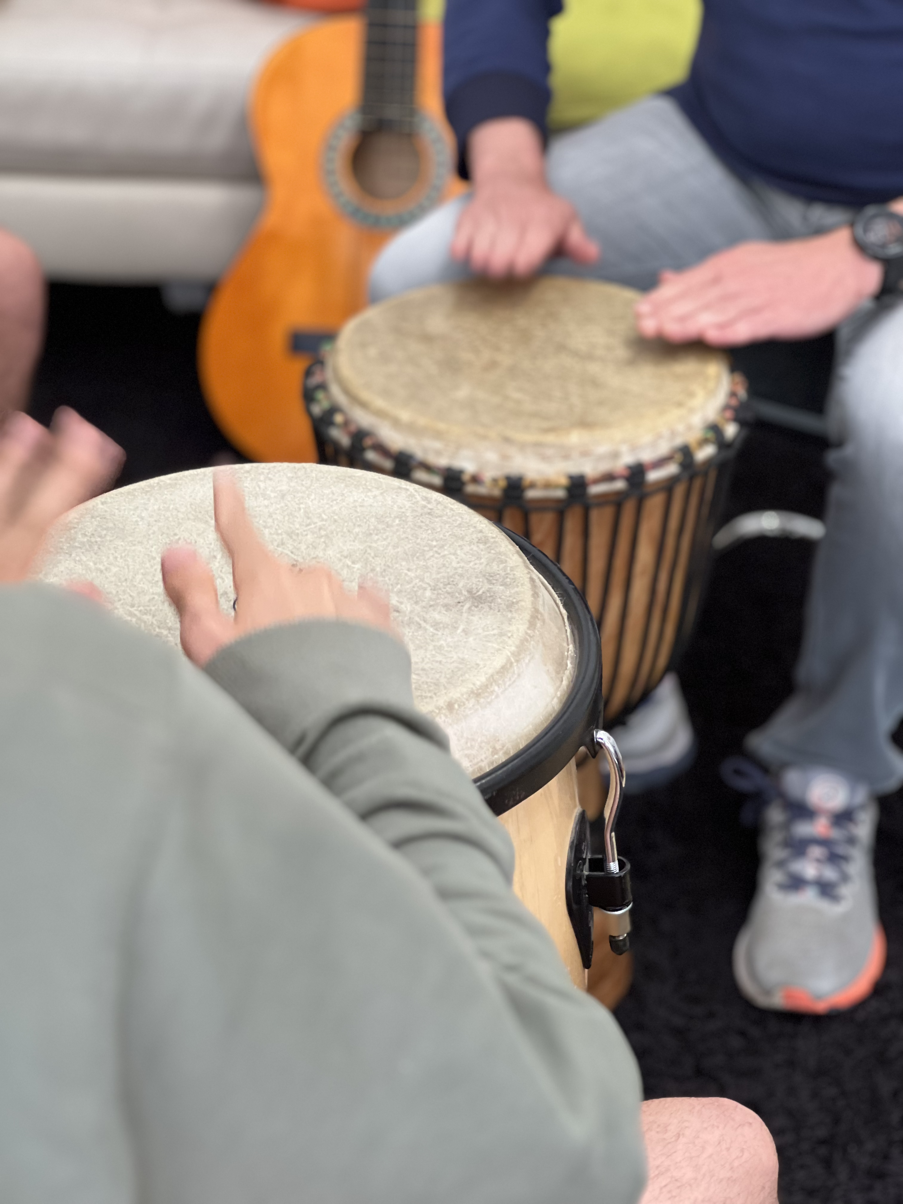 Nuestros terapeutas trabajan individualmente o en pequeños grupos, creando un espacio para la expresión y la conexión. Terapeuta y cliente hacen música juntos como iguales, respondiendo mutuamente a sus señales. Cada sesión es única, porque cada persona lo es.»